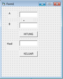 Sebagai langkah pertama belajar bahasa pemrograman Microsoft Visual Basic 6, coba buka IDE VB6. Buat form sebagai berikut: