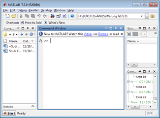 Langkah pertama adalah buka Matlab Anda. Arahkan Current Directory pada posisi folder yang tepat.