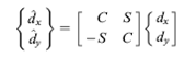Dengan C dan S berturut-turut Cos ᶿ dan Sin ᶿ. Misalnya kita memiliki kasus di bawah ini diketahui d2x dan d2y berturut-turut 0.1 dan 0.2 in.