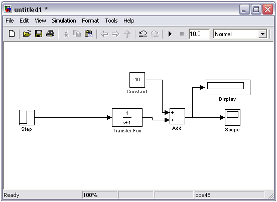 Begitu juga dengan constant, beri harga -10. Di sini kita ambil contoh pemanas yang akan memanaskah suhu hingga 80 derajat tetapi menerima gangguan dari lingkungan sekitar misalnya 10 derajat di bawah harga set pointnya. Untuk mensimulasikan, klik icon