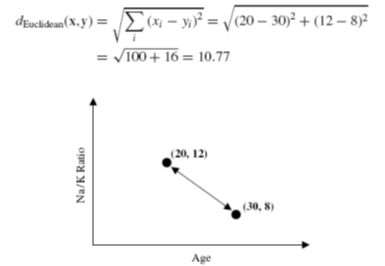 K-NN menggunakan teknik perhitungan jarak antara sampel dengan data yang telah ada (dikenal dengan istilah data training). K-NN masuk dalam kategori “Supervised Learning” karena data yang menjadi acuan (data training) memiliki Label (kelas tertentu). Berikut ini contoh pembuatan aplikasi dengan GUI untuk klasifikasi suatu sampel dengan K-NN. Berikut contoh perhitungan jarak antara titik sampel, misalnya (20,12) dengan salah satu data training, misalnya (30,8) dan diperoleh hasil 10.77.