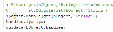 Back to m-file, we have to create script for capturing ipa and ips values. At function ipa_Calback and ips_Callback, use this script. Copy-paste this script for ips and replace “a” with “s” for easiness.