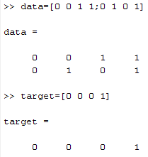 Berikut ini kita akan menguji kemampuan pembelajaran Jaringan Syaraf Tiruan (JST) antara Matlab 7 dengan Matlab 8. Untuk mudahnya, kita misalnya akan mengajari perkalian dua bilangan. Persiapkan datanya sebagai berikut pada command window.