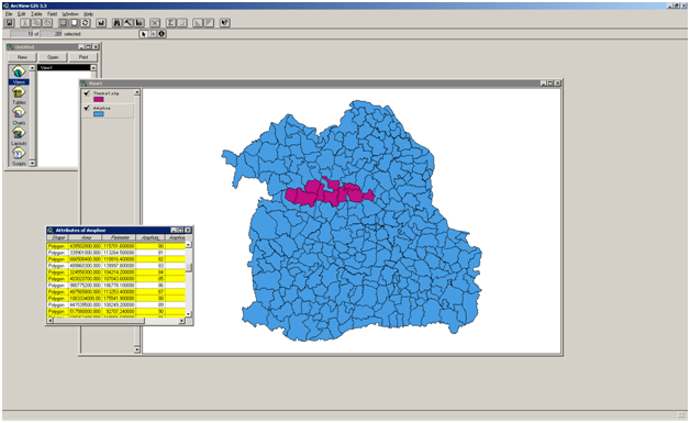 Open its table and select the sub area that you want to analysis by clicking shift and left mouse in the same time. In the picture above we want to analyze only the red area. After finish selecting areas we continue to convert it into other shape files by clicking Theme – Convert to Shapefile. Click yes if you want to add this new shapefile to the view after giving a name for it. Try to integrate this new shapefile to other data such as road, elevation, etc. Use a geoprocessing wizard to manipulate this data because the road data we have already is for north-east area.