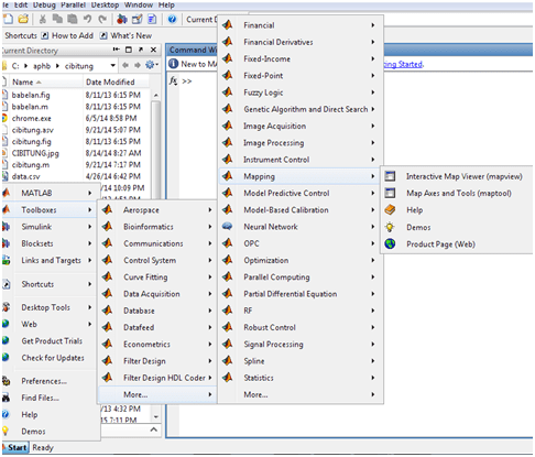 Ok, fungsi matrix dasar berfungsi dan sama dengan Scilab. Bagaimana dengan programmingnya? Pertanyaan yang sama dengan pembahasan Scilab diawal tulisan. Buka/Open direktori kerja .. kok agak lama ya prosesnya. Sebelumnya saya membuat program dengan bahasa Matlab sebagai berikut: