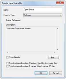Kalo sudah selesai maka buat shapefile baru dengan tipe polygon untuk membuat area ruang terbuka yang nantinya menjadi dasar dalam membuat analisa suitability.