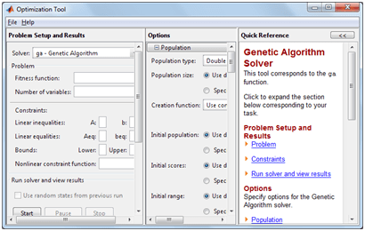 Of course you can just type “optimtool” in command window, and choose GAs as your basis of optimization. But understanding something inside it I think very important, how selection, crossover, etc. so we can manipulate them for giving better efficiency, accuracy and speed.