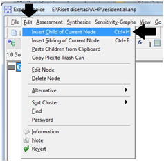 Buka expert choice dilanjutkan dengan memberi nama project yang akan dibuat di software tersebut. AHP ini idenya dicetuskan oleh Saaty dan Vargas tahun 2000, silahkan unduh sendiri jurnalnya. Berikutnya adalah kita masukan variabel-variabel pendukung keputusan di menu edit (Ctrl-H).