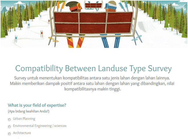 Di sini saya akan membuat kuesioner untuk menentukan kompatibilitas dan dependensi (ketergantungan) antara satu tipe lahan dengan tipe lahan lainnya. Misalnya tempat tinggal akan kompatible dengan rumah sakit, sekolah, dan lain-lain tetapi tidak dengan industri dan sejenisnya. Tekan tombol create new form.