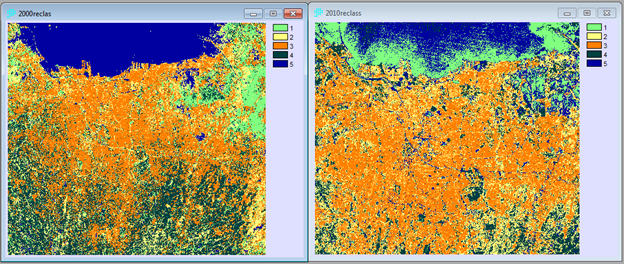 Tampak dua peta Jakarta dan sekitarnya di tahun yang berbeda (2000 dan 2010) sudah memiliki simbol yang sama. Dari mana peta itu didapat? Coba download sendiri di situs USGS yang tatacara-nya sudah dibahas pada postingan yang lalu. Jika tidak maka ketika akan diproses oleh LCM, akan muncul peringatan.