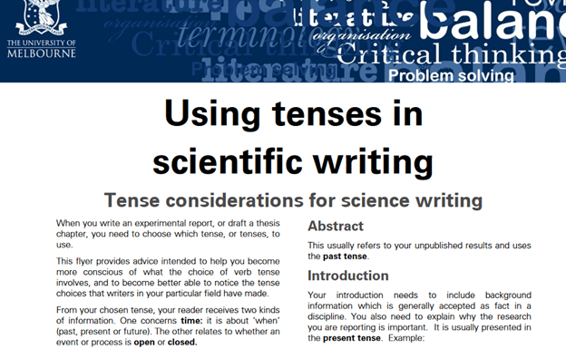 Naskah ditolak publisher karena bahasa Inggris berantakan biasanya sering dialami kita yang pemula ketika mengirim naskah tulisan ilmiah ke jurnal internasional. Padahal sebelumnya tidak ada masalah ketika mengirim ke jurnal lokal yang menggunakan bahasa Indonesia. Hal ini terjadi karena bahasa Inggris memiliki tenses berbeda dengan bahasa kita. Beberapa rekan yang sudah mau lulus banyak memberi masukan, tetapi karena secara lisan dan sambil ngopi, terkadang ketika mulai menulis malah lupa lagi. Akhirnya secara tidak sengaja menemui situs yang berisi tatacara penulisan tenses dalam jurnal. Untungnya cuma dua halaman dan sudah dalam framework intro, method, result, and discussion (IMRaD). Silahkan diunduh di sini.