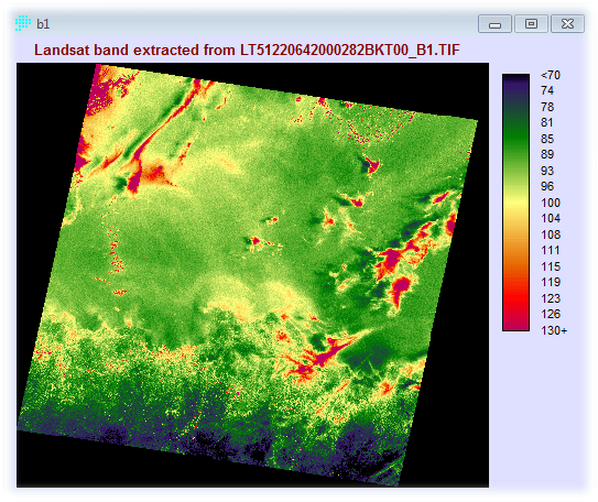 Fungsi yang diperlukan dalam cropping dengan IDRISI adalah Window yang dapat dibuka dengan mengklik Reformat – WINDOW. Kita ambil contoh citra satelit yang diambil pada bulan Oktober 2000 dengan band 1. Gambar utuhnya dapat dilihat di bawah ini. Untuk mengunduhnya, silahkan masuk ke situs resmi USGS yang sudah dibahas pada postingan yang lalu.