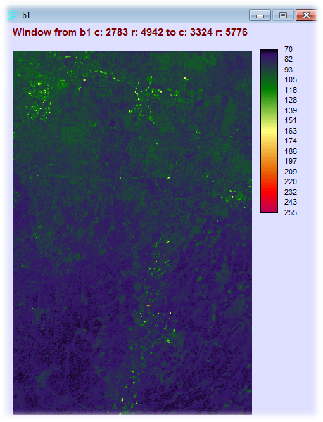 Setelah image untuk memotong sudah tersedia, pilih nama filenya di jendela WINDOW. Tekan OK dan tunggu beberapa saat hingga IDRISI menampilkan citra satelit yang sudah ter-cropping.