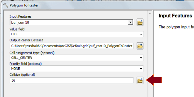 Karena hasil pengolahan citra IDRISI berformat raster (*.rst) maka peta LU harus dikonversi lagi dari polygon ke raster dengan fungsi “polygon to raster” pada ArcGIS. Perhatikan bagian “Cellsize”, gunakan template dari image yang digunakan Land Cover.