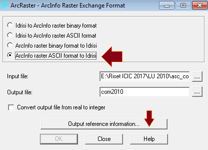 Terakhir, buka IDRISI dan ambil fungsi ARCRASTER untuk mengimpor image dari ArcGIS. Pilih radio button terakhir yang mengkonversi dari Ascii format Idrisi.