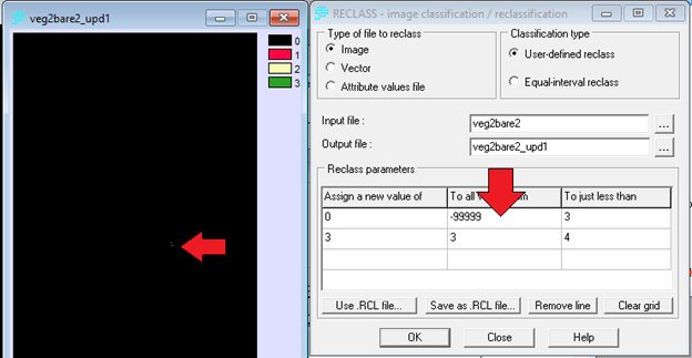 Langkah terakhir adalah mengklasifikasi ulang dengan reclass untuk memasukan tambahan piksel ke dalam kelas yang semestinya. Perhatikan gambar di bawah dimana ada tambahan kelas (7,8, dan 9) yang merupakan kelas baru hasil penjumlahan piksel yang disisipi dengan dari image Idrisi.