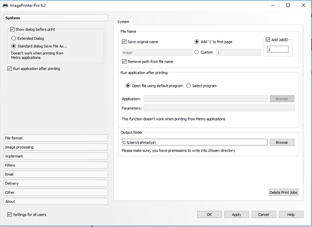 Ada dua pilihan yang tersedia dari software imageprint yaitu ke JPG dan ke TIFF. Silahkan pilih yang sesuai.