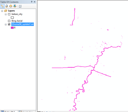 Dobel klik saja pada peta klasifikasi yang sudah di-geret dari file-nya lewat Catalog. Selanjutnya misalnya yang berwarna merah mudah adalah air, dan akan kita pisahkan dengan yang lain. Tinggalkan saja air dan yang lainnya remove dari symbology.