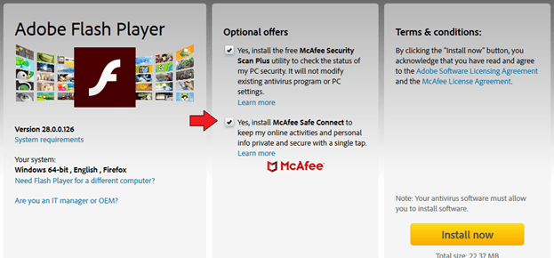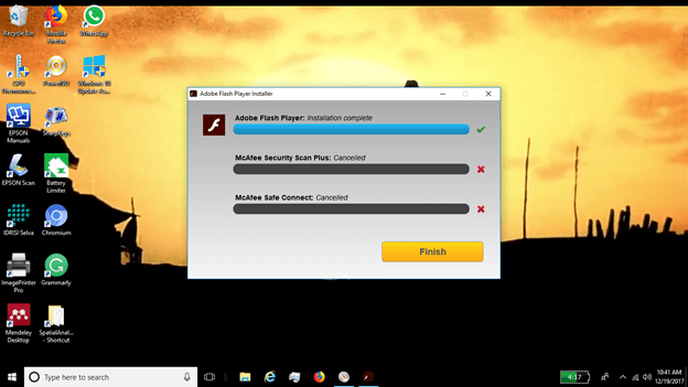 Untunglah walaupun terlanjur, tetapi karena download McAfee lebih lama, ketika adobe flash selesai langsung saja di”silang”, dan McAfee pun ter-“cancel”.