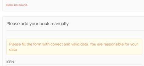 Pertama akan diminta cari dulu berdasarkan ISBN-nya. Bagaimana jika tidak ditemukan? Ternyata setelah dicari tidak ada, muncul fasilitas input manual. Siapkan scan cover buku yang akan diinput.
