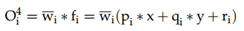 Setelah pembobotan yang telah dinormalkan selesai, proses dilanjutkan dengan mengalikan dengan fungsi yang melibatkan masukan (x dan y) untuk menghasilkan keluaran yang sudah dalam bentuk CRISP.
