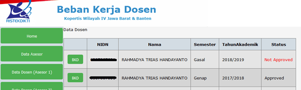 LLDIKTI wilayah 4, sebelumnya bernama Kopertis 4, merupakan satu-satunya LLDIKTI yang menjalankan pelaporan Beban Kerja Dosen (BKD) secara online. Sebelumnya BKD dilakukan secara offline lewat program singkat via Microsoft Access. Postingan ini sedikit menginfo-kan kepada rekan-rekan dari LLDIKTI wilayah lainnya mengenai apa itu BKD Online.