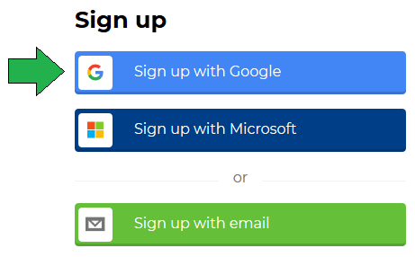 Berikutnya diminta cara sign up (ada tiga pilihan). Gunakan saja login with Google agar lebih cepat. Pilihan lainnya adalah Sign up with Microsoft, jika ingin.