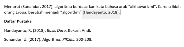 Pastikan muncul daftar pustakan yang diinginkan beserta formatnya. Selamat mencoba. Tapi sangat disarankan menggunakan Mendeley.