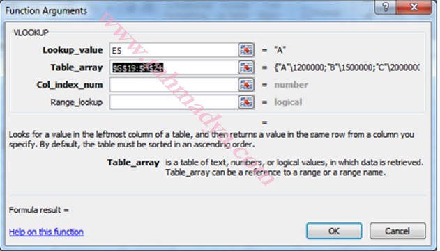 Untuk Table_array diisi dengan matriks referensi (biasanya lebih dari satu kolom). Jangan lupa tekan F4 untuk memberikan simbol $ di baris maupun kolomnya.