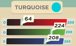 Perhatikan warna Turqoise di bawah ini. Warna ini merupakan kombinasi warna Red, Green, dan Blue berturut-turut 64, 224, dan 208. Bagaimana merepresentasikannya dalam Matlab?