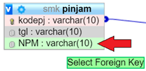 Pilih NPM pada tabel siswa sebagai referenced key. Field ini merupakan primary key tabel siswa.