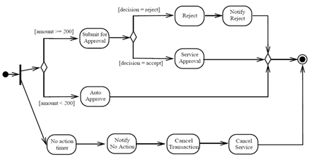 Perhatikan contoh lain bagaimana merinci suatu aktivitas dengan activity diagram di atas. Bagaimana fork dan join diimplementasikan dalam diagram aktivitas sebaiknya tetap mengacu standar. Sekian, silahkan kunjungi situs standar UML tersebut, semoga bisa membantu melerai pertengkaran di meja sidang skripsi/tugas akhir.
