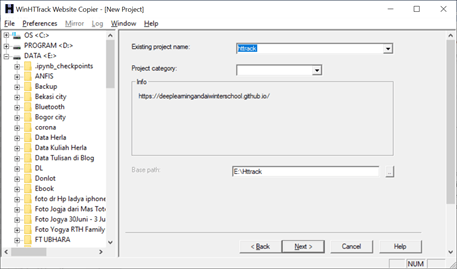 Nah, untuk langsung mempraktekan cara menjalankan sebuah situs Web, ada satu aplikasi sederhana yang mengkopi sebuah situs Web lengkap, salah satunya HTTRACK. Dengan menyediakan folder untuk lokasi download, httrack dengan mudah mengunduh seluruh situs Web, hingga ke folder-foldernya. Tentu saja jika Webnya besar, waktu yang diperlukan juga lama. Nah, ambil contoh saja situs yang Single Page.