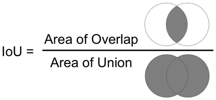 Dengan perhitungan yang ketat diharapkan model usulan dapat dengan mudah membandingkan antara satu metode dengan metode lainnya. Prinsip dasarnya adalah mIoU membandingkan intersection prediksi dan ground truth (aktual) dengan union (gabungan) prediksi dan ground truth.