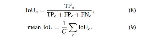 Untuk menghitung rata-rata IoU, atau disingkat mIoU, caranya adalah menghitung IoU seluruh kelas, lalu merata-ratakannya seperti rumus 9. Diperoleh miou = 0.6391. Selamat mencoba.