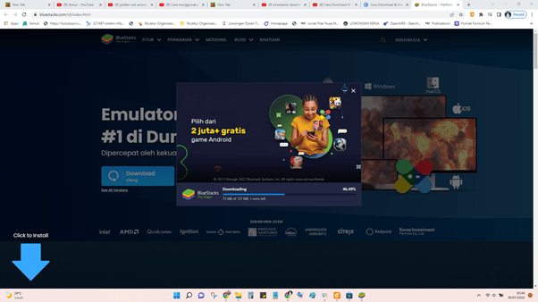 Setelah file exe diunduh, jalankan program tersebut untuk langsung mengunduh file installer sebesar kira-kira ratusan Mb.