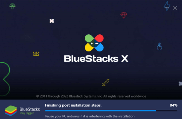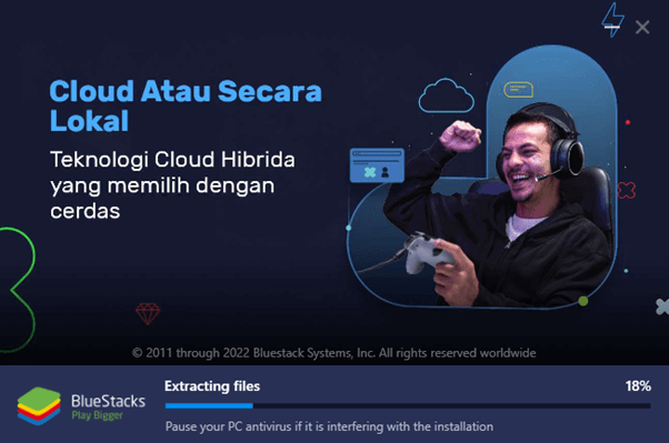 Setelah mengecek dan ekstrak file instaler yang telah diunduh, Bluestacks melanjutkan proses instalasi. Tunggu sampai selesai.