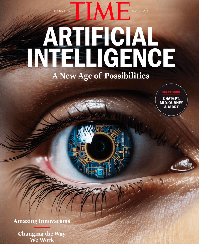 Majalah TIME membahas Artificial Intelligence (AI) yang merambah ke segala bidang. Banyak peran manusia yang tergantikan, misalnya bagian informasi yang menjawab pertanyaan dari customer. Tadinya berupa chat dengan manusia, sekarang digantikan oleh mesin. Banyak kekhawatiran dari pekerja yang terancam digantikan tugas-tugasnya. Namun efisiensi sangat penting dalam tiap organisasi dan manusia seharusnya fokus ke bidang-bidang tertentu seperti kreativitas dan hal-hal yang tidak bisa dijalankan oleh mesin.