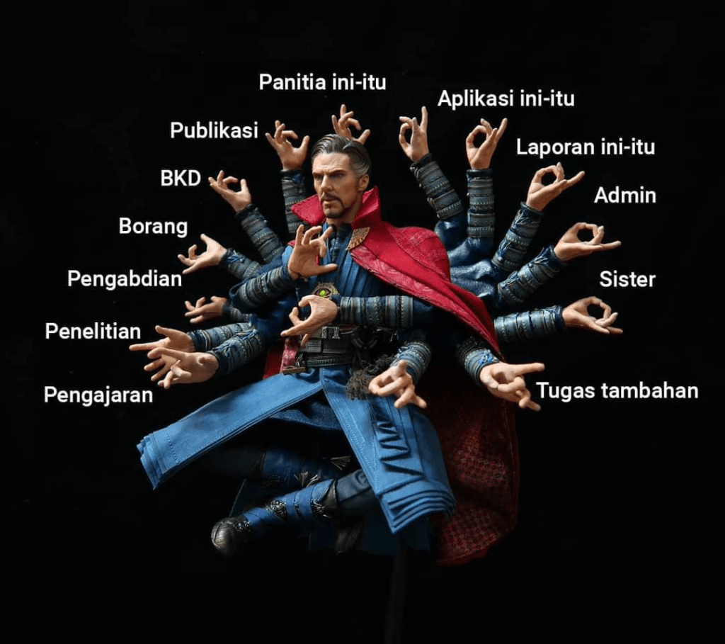 Jadi walau beban administratif dosen dikurangi tetap saja karakter dosen yang ingin selalu terlibat dalam masyarakat tetap saja banyak kerjaan, terutama di benaknya. Silahkan jika Anda memiliki teknik lain yuk berbagi.