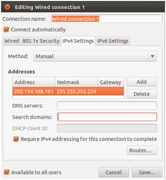 Berikut ini sedikit penjelasan untuk subnetting IP Address kelas C untuk subnet 255.255.255.224 (/27). Jumlah Network dan Host berturut-turut: 23-2 =6 dan s5-2=30. Cara mencari alamat-alamat subnet yang VALID dengan cara menjumlahkan kelipatan 256 – 224 = 32, yang dimulai dari 32, antara lain: 32, 64, 128, 160,192, 224. Jadi jika alamat network pada kasus di atas = 160, maka IP address yang VALID untuk host berkisar dari 161 hingga 190. Jika sudah yakin IP address yang akan diimplementasikan tidak bermasalah, masuk ke “Configure” pada “System Setting – Network“. Pilih Method yang digunakan “Manual“, bukan “DHCP“.