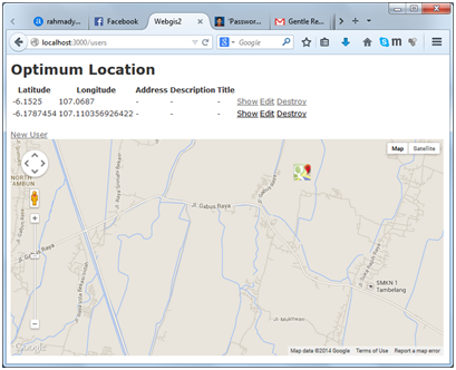 Saya menggunakan tabel ini untuk menyimpan koordinat longitude dan latitude suatu lokasi. Dengan instruksi SELECT diketahui data sebagai berikut: