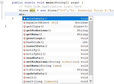 Kelas di atas tidak menghasilkan output karena belum dihidupkan objeknya. Berikut cara mencoba method yang direpresentasikan dalam keyword “def” di atas.
