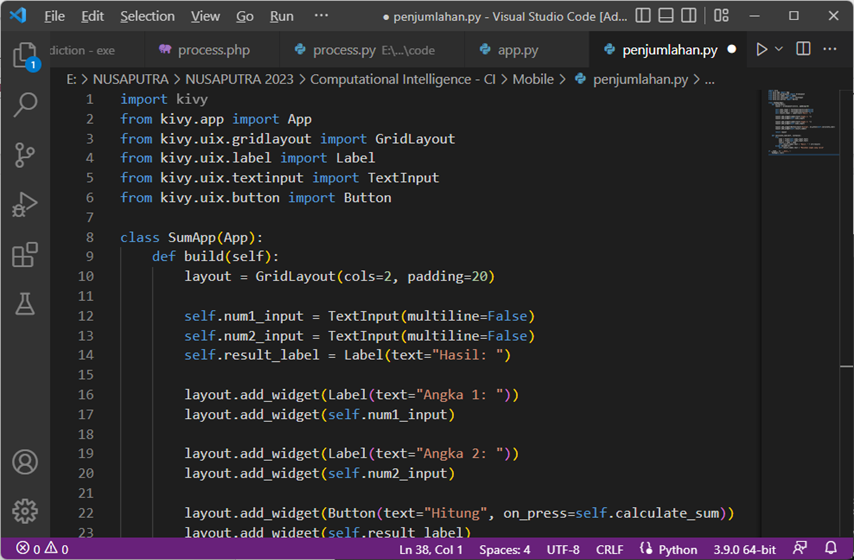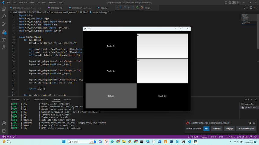 Jika sudah siapkan aplikasi dengan TKinter, misalnya menjumlahkan secara sederhana dua angka. Untuk gampangnya silahkan tanya saja ChatGPT untuk samplenya.