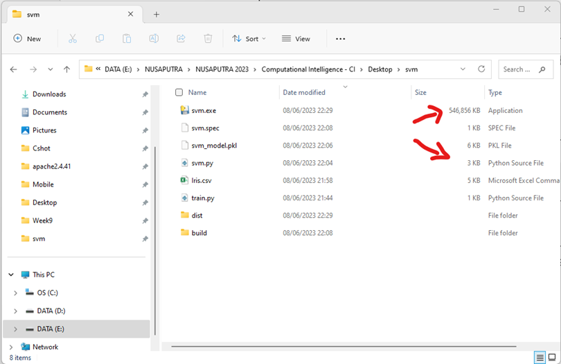 Tergantung besar atau kecilnya file py, pyinstaller akan mengkonversi menjadi exe. Hasilnya adalah sebuah file tesgui.exe yang terletak di folder dist.