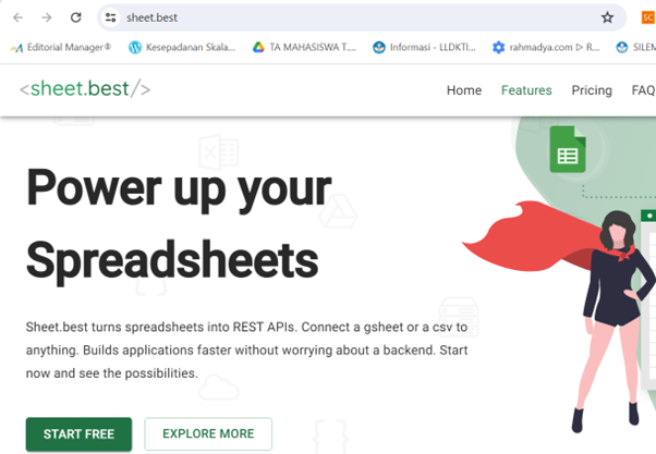 Dengan API maka program yang dibuat tidak perlu mensinkronkan program dengan platform database yang digunakan, misal MySQL, Oracle, SQL Server, dan lain-lain. Asalkan API tersedia maka program tidak perlu menggunakan driver untuk terkoneksi dengan basis data tersebut. Untuk mudahnya, gunakan saja Sheet.Best [link].