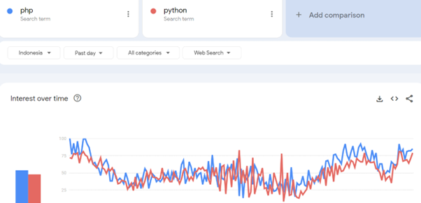 Jika dilihat dari tren framework web dari Google [link] maka dapat dilihat, untuk Indonesia, bahasa PHP masih banyak peminatnya, sementara untuk dunia, Python yang mendominasi.